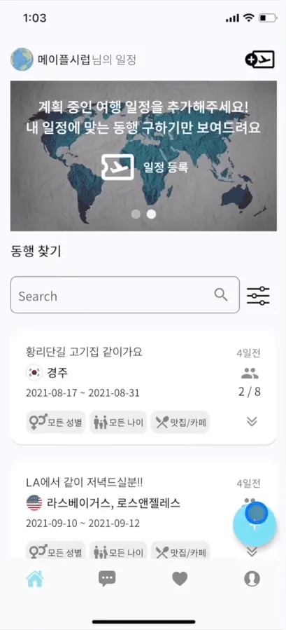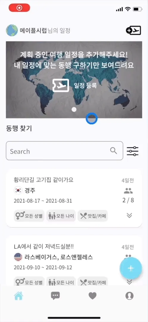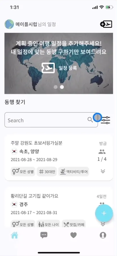 ⇒ 맘에 드는 동행글을 발견하면 동행요청을 보내세요!